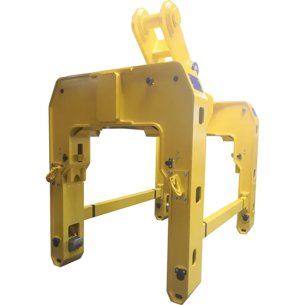 Ce palonnier est équipé de quatre sabots massifs escamotables en partie inférieure, permettant la préhension par prise positive des cylindres. Il dispose de quatre sabots massifs, articulés et escamotables, positionnés en partie basse des bras. Ils permettent la préhension en prise positive des cylindres, à l’intérieur des encoches usinées dans les empoises, sans assistance manuelle.